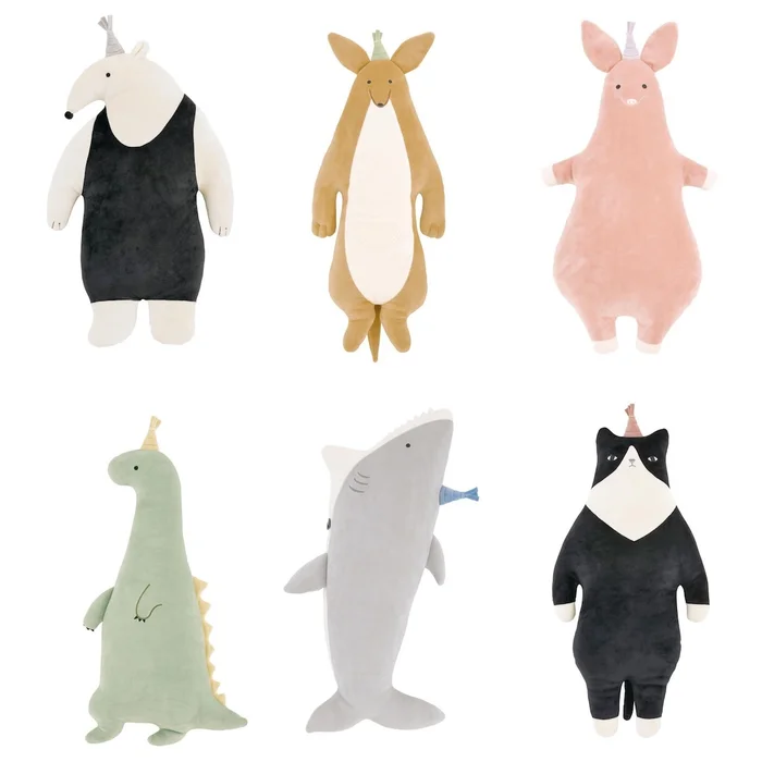 It’s time for a sleepover party! Each of these cute animal hug pillows has put on their best party hats ready to come and meet you. Choose from Anteater, Kangaroo, Pig, Dinosaur, Shark, and Cat. Each is a great buddy to share a room with.